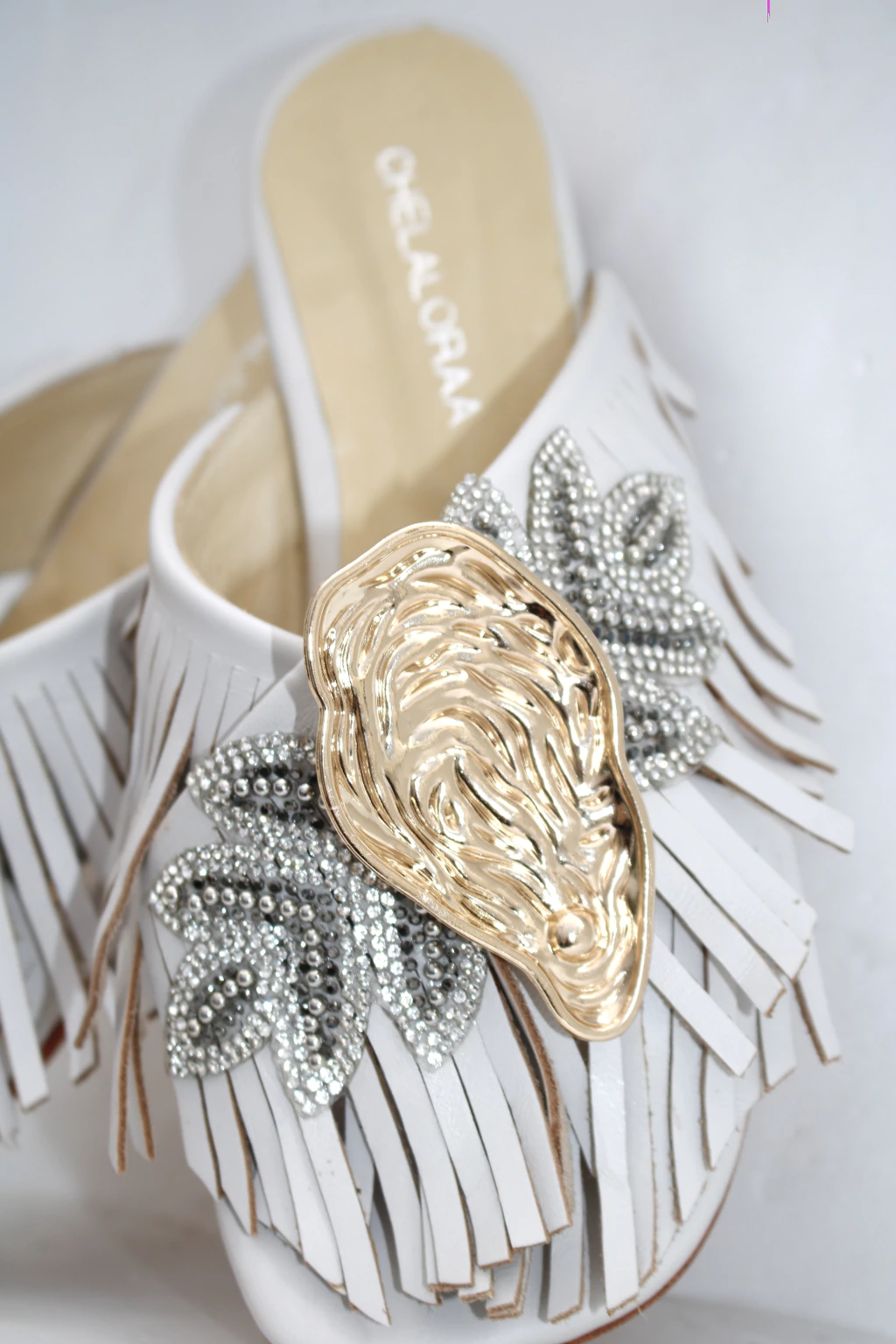 Sus flecos suaves aportan movimiento y estilo, mientras que el detalle Chelaloraa, con su aplique dorado y plateado, suma ese brillo único que las hace inconfundibles.